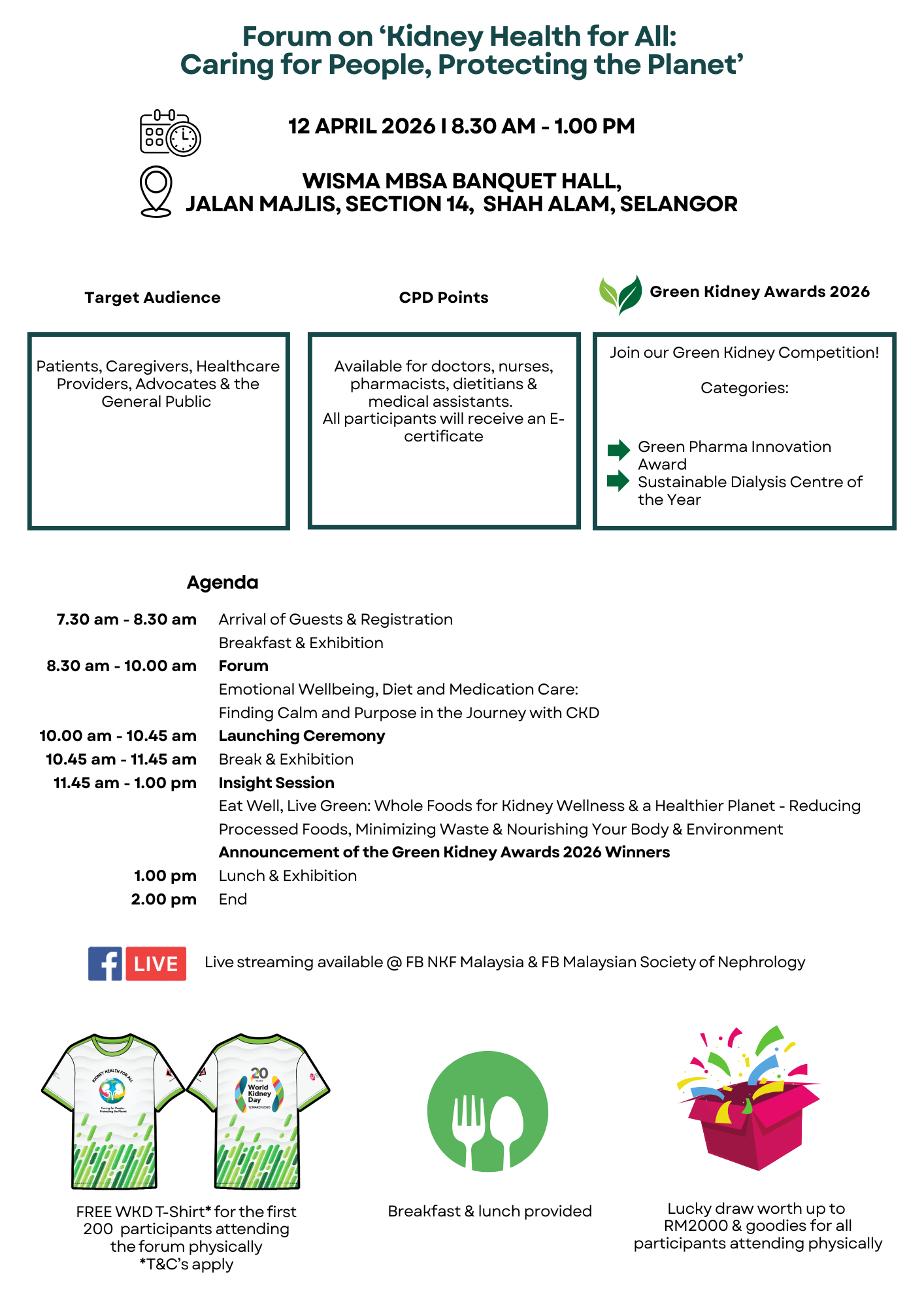 In line with this year’s theme, “Kidney Health for All: Caring for People, Protecting the Planet” our forum will focus on emotional wellbeing, healthy diet and medication care-supporting both people’s health and sustainable living.